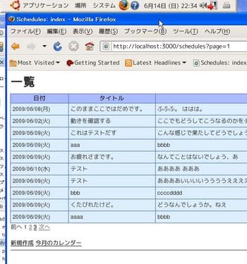 Railsを知ってる方から「やっとここまでなの?」って指摘を受けそうですが、ようやく書籍のような画面を作成できて正直うれしいです。