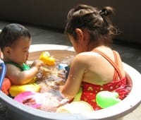 子供をベランダで水遊びさせる事にしました。